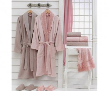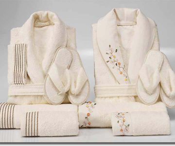 içindekiler: Bay ve bayan bornoz, El yüz havlusu 2 adet, Bay ve bayan terlik, Banyo havlusu 2 adet.