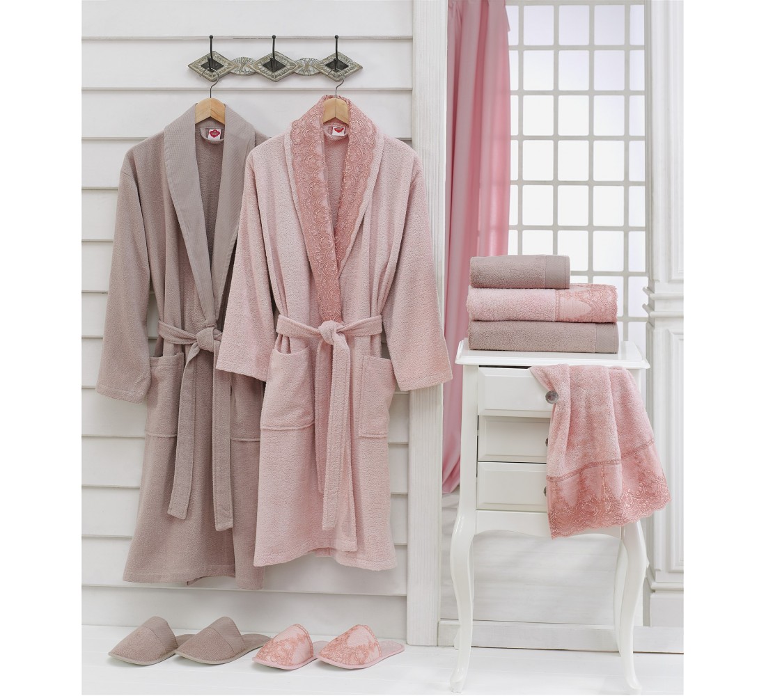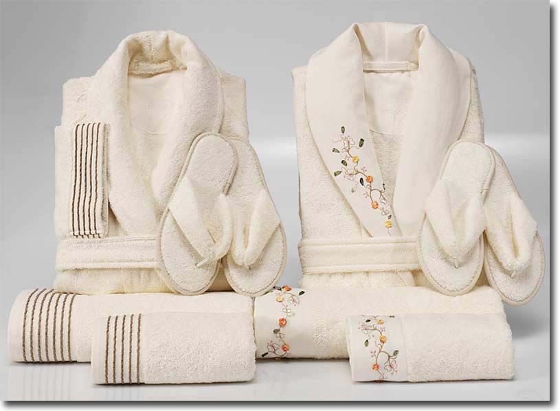 içindekiler: Bay ve bayan bornoz, El yüz havlusu 2 adet, Bay ve bayan terlik, Banyo havlusu 2 adet.